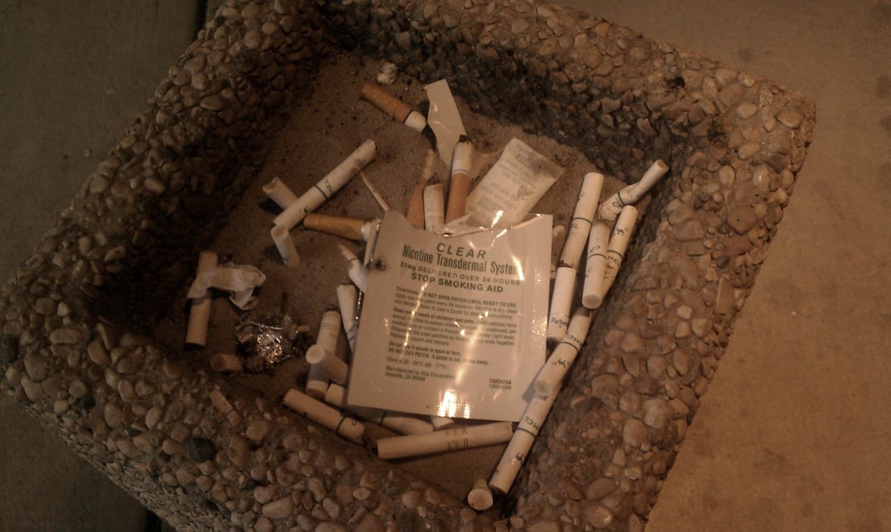 I’d been using for a year and it didn’t help, not in the least. No, actually I think it made it worse. I put that last patch on and tossed the wrapper where it is, and then, right there, I just had to have a smoke, right away. I couldn’t help myself.