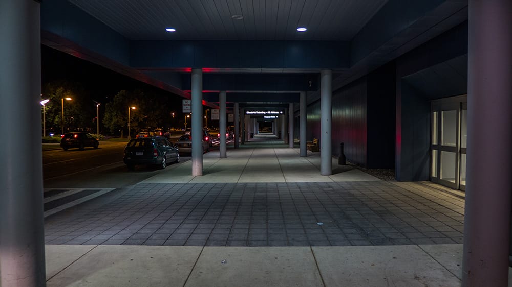 cars were scattered through the streets and parking lot, and people milled themselves across terminals, down stairs, and through baggage claims. he knew this because he could hear these things happening.